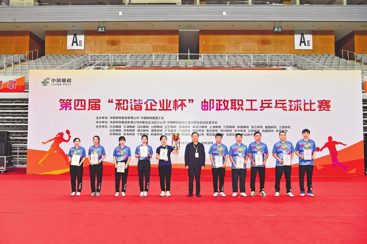 金秋9月,激情碰撞在美麗的北疆。9月11—13日,由中國郵政集團有限公司、中國郵政集團工會主辦,內(nèi)蒙古自治區(qū)郵政分公司、內(nèi)蒙古郵政工會承辦的第四屆“和諧企業(yè)杯”郵政職工乒乓球比賽在呼和浩特市火熱舉行。中國信息通信體育協(xié)會主席田利民及中國郵政集團工會領(lǐng)導(dǎo)等出席開幕式并為獲獎選手頒獎。