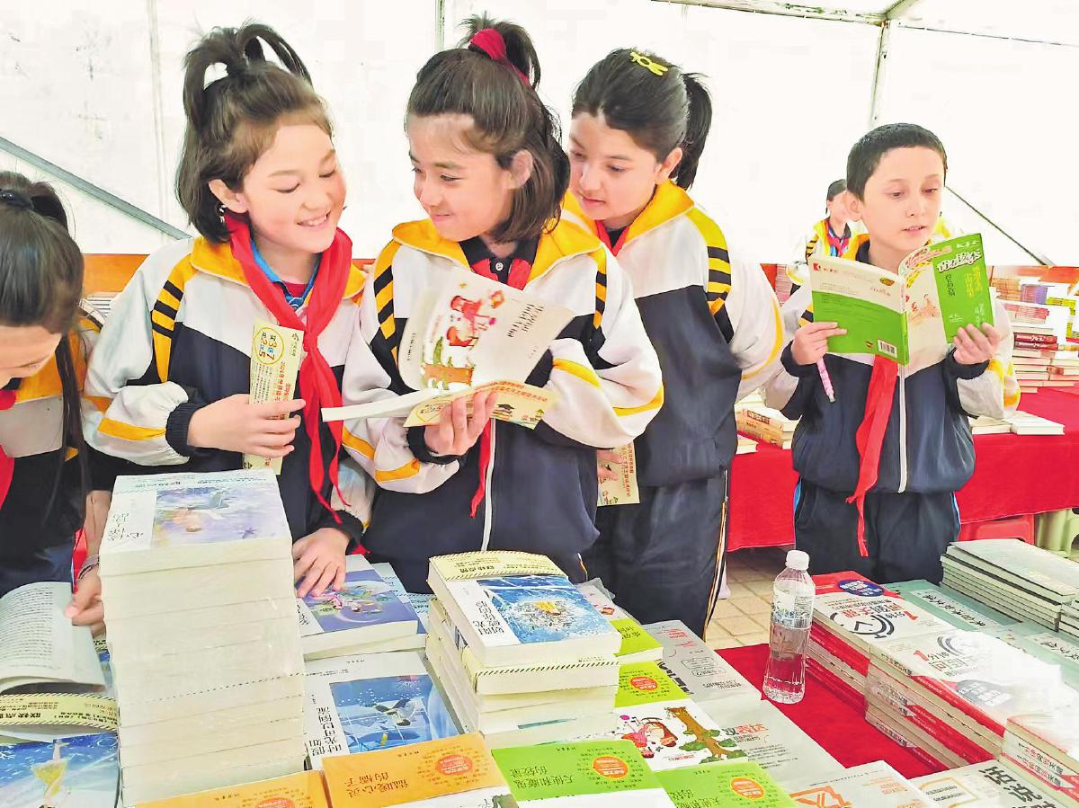 近日,由新疆維吾爾自治區(qū)喀什市委宣傳部、市教育局牽頭,喀什地區(qū)郵政分公司承辦的“閱讀新時(shí)代·喀什向未來(lái)”圖書贈(zèng)閱惠民活動(dòng)啟動(dòng)儀式在喀什市第十一小學(xué)舉行。喀什地區(qū)分公司捐贈(zèng)了價(jià)值6萬(wàn)元的圖書和價(jià)值80萬(wàn)元的圖書優(yōu)惠券,并現(xiàn)場(chǎng)進(jìn)行圖書展銷,進(jìn)一步豐富學(xué)校圖書閱覽室藏書,培養(yǎng)學(xué)生良好的閱讀習(xí)慣,讓他們?cè)谧x書中獲得更多知識(shí),健康快樂地成長(zhǎng)。圖為喀什市第十一小學(xué)的學(xué)生徜徉在書海中。