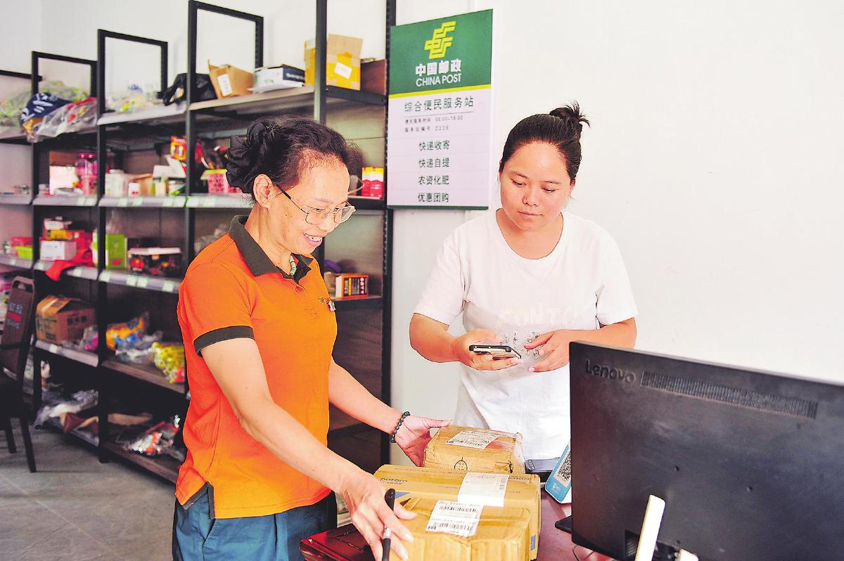 “以前我們?nèi)】爝f都要去鎮(zhèn)上,現(xiàn)在郵政把站點(diǎn)建到了我們村里,所有快遞在家門口就可以直接取,大大節(jié)省了時(shí)間。有時(shí)候在外地工作的家人想吃點(diǎn)兒家鄉(xiāng)土特產(chǎn),也可以通過服務(wù)點(diǎn)馬上寄出去,大大方便了我們!”9月15日,村民李美英走進(jìn)湖南省湘西土家族苗族自治州花垣縣龍?zhí)洞遴]政綜合服務(wù)站點(diǎn)取快遞時(shí),樂呵呵地說。