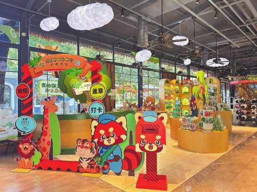 北京野生動(dòng)物園主題郵局處于園內(nèi)猛獸區(qū)下車站的顯眼位置,設(shè)計(jì)和裝飾上巧妙地融入了動(dòng)物風(fēng)格元素,仿佛是動(dòng)物王國的入口?!爸黝}郵局的設(shè)計(jì),是吸引游客的一大亮點(diǎn),以鮮明的動(dòng)物IP形象為核心,比如萬人迷的‘小熊貓局長’、沉穩(wěn)的‘卡皮巴拉郵遞員’以及身手靈活的‘黑猩猩快遞員’等。各種動(dòng)物元素和郵政元素的結(jié)合,讓游客在體驗(yàn)郵政服務(wù)的同時(shí),也能享受無盡樂趣?!北本┮吧鷦?dòng)物園主題郵局負(fù)責(zé)人高茜介紹道。