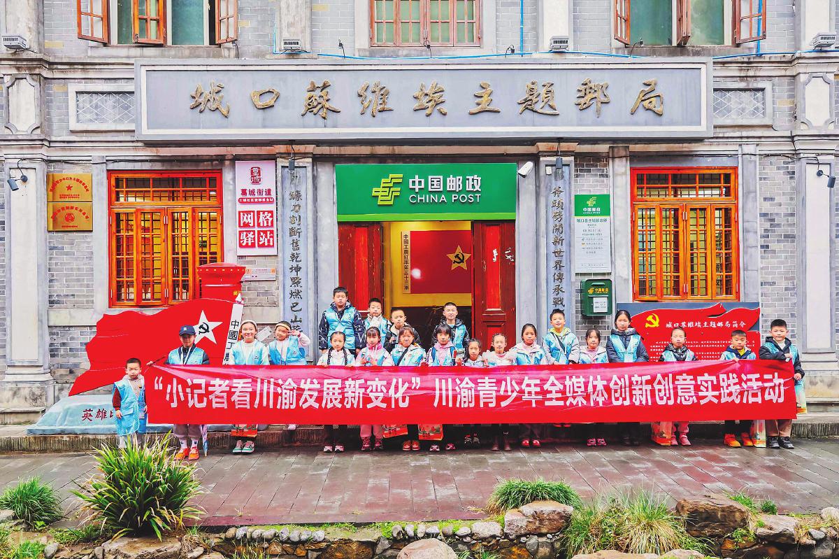 11月23日,“小記者看川渝發(fā)展新變化”川渝青少年全媒體創(chuàng)新創(chuàng)意實(shí)踐活動(dòng)走進(jìn)重慶市城口縣青少年紅色教育基地——城口蘇維埃主題郵局。在主題郵局,郵政員工向小記者們講解了郵政發(fā)展史,帶領(lǐng)小記者們參觀了展廳內(nèi)老式自行車、磁石式電話,感受有聲圖書(shū)等智能終端設(shè)備帶來(lái)的現(xiàn)代化郵政服務(wù)體驗(yàn)。