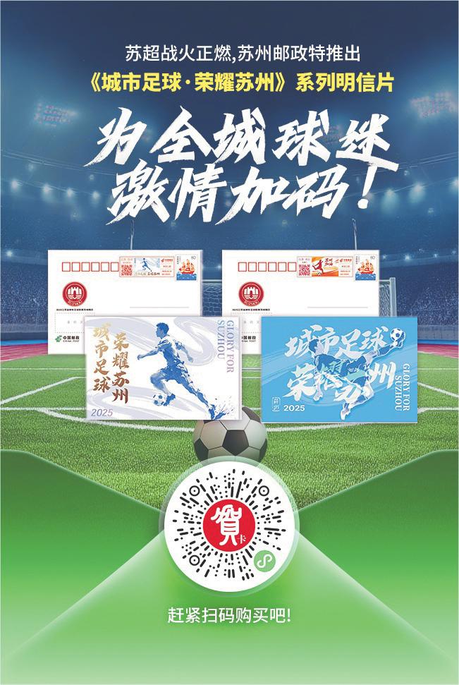 盛夏時節(jié),江蘇省城市足球聯(lián)賽(簡稱“蘇超”)激戰(zhàn)正酣。作為賽事服務體系的重要組成部分,蘇州市郵政分公司憑借官方獨家授權和數字化業(yè)務創(chuàng)新,推出賽事紀念明信片寄遞與抽獎互動服務,為廣大球迷及收藏愛好者帶來高品質、便捷化、參與感強的賽事文化體驗。