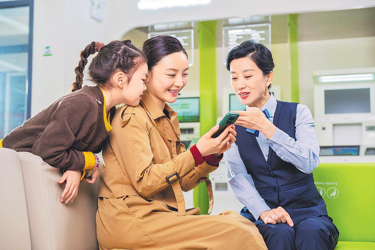 在郵儲(chǔ)銀行濟(jì)南市歷下支行,工作人員“一對(duì)一”為客戶(hù)介紹手機(jī)銀行新功能,助力客戶(hù)享受智能化服務(wù)。