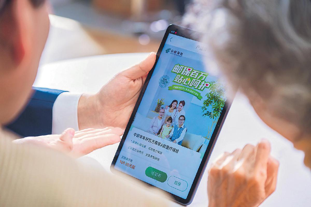 中郵保險(xiǎn)濟(jì)南市網(wǎng)點(diǎn)內(nèi),服務(wù)人員向客戶(hù)展示健康、養(yǎng)老保險(xiǎn)產(chǎn)品的可視化詳情,科技感中傳遞著專(zhuān)業(yè)與溫度。