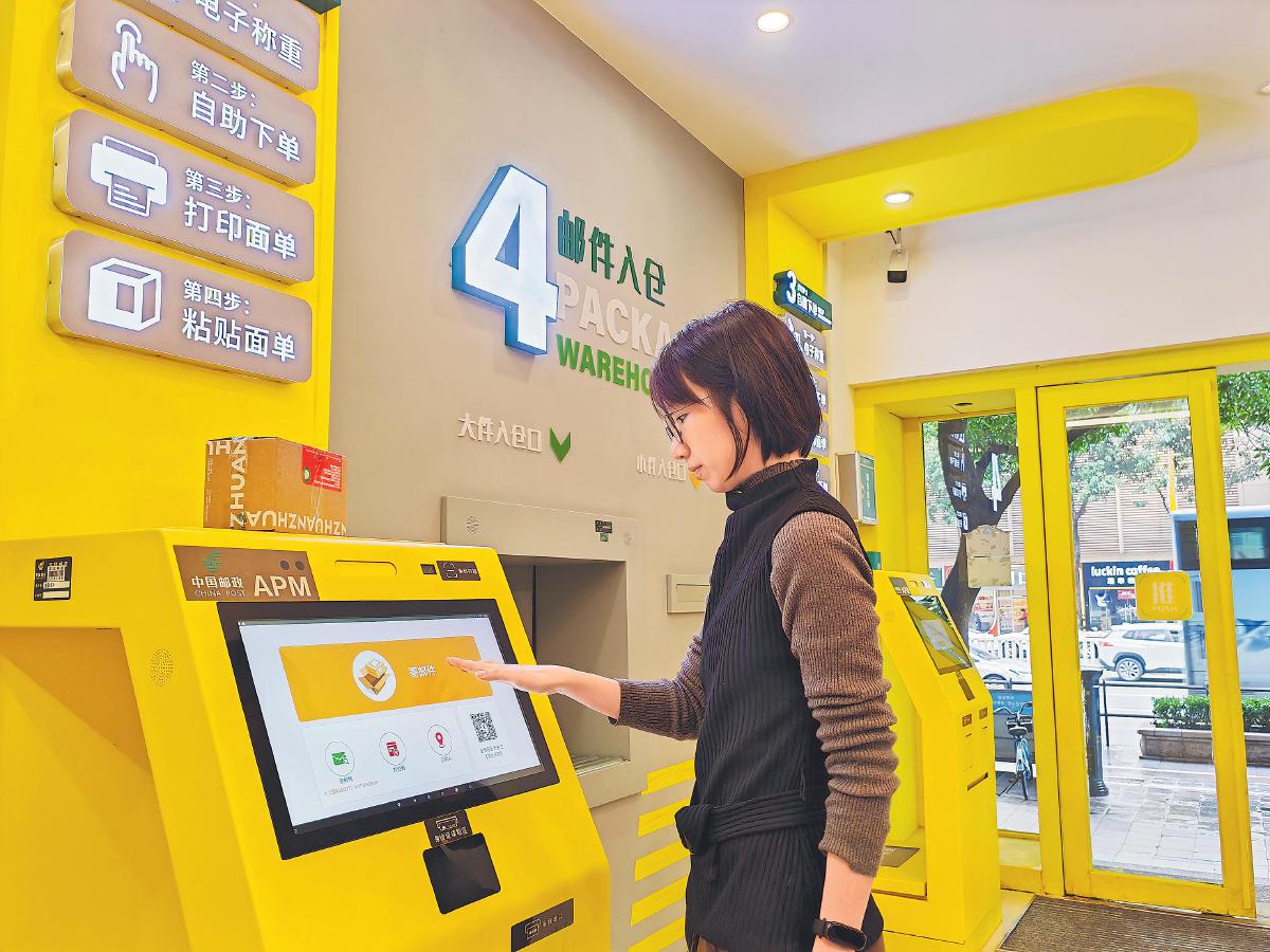 在廣東省深圳市的自助體驗(yàn)式郵局,客戶(hù)通過(guò)智能設(shè)備輕松完成包裹寄遞。