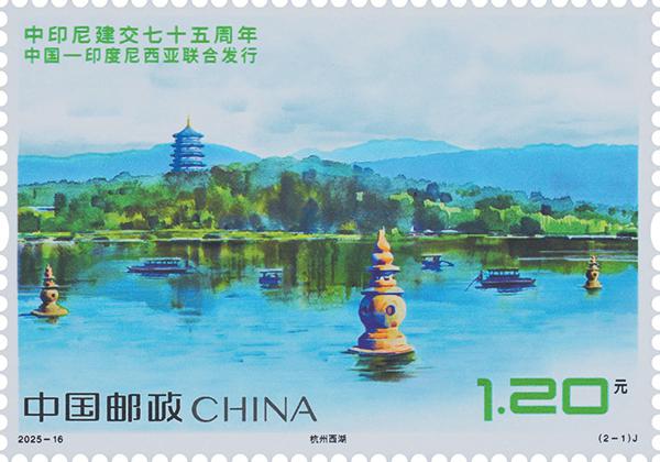 中國(guó)郵政定于8月30日發(fā)行《中印尼建交七十五周年》(與印度尼西亞聯(lián)合發(fā)行)紀(jì)念郵票一套兩枚,郵票圖案名稱為:杭州西湖、布拉坦湖。