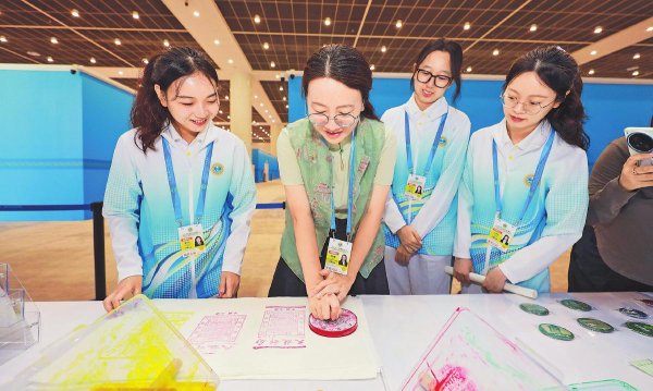 天津郵政充分發(fā)揮自身文化屬性,聚焦“傳統文化、大國外交、魅力天津”三大主題,結合天津城市特色,推出45款彰顯天津文化和郵政文化的郵品。同時,天津郵政設置郵品互動體驗區(qū),展出中國首套郵票——大龍郵票。媒體記者和工作人員在欣賞郵票珍品的同時,還能體驗大龍郵票拓印制作過程(見圖),更加深刻感受到中國郵政的歷史厚重感以及天津的文化底蘊。