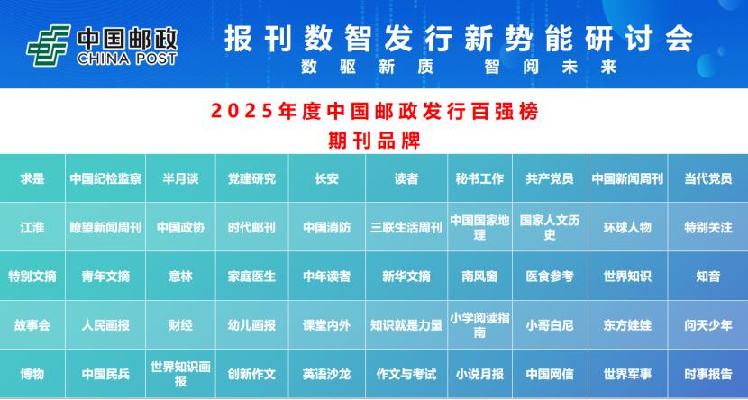 入選“2025年度中國(guó)郵政發(fā)行百?gòu)?qiáng)榜”的是: