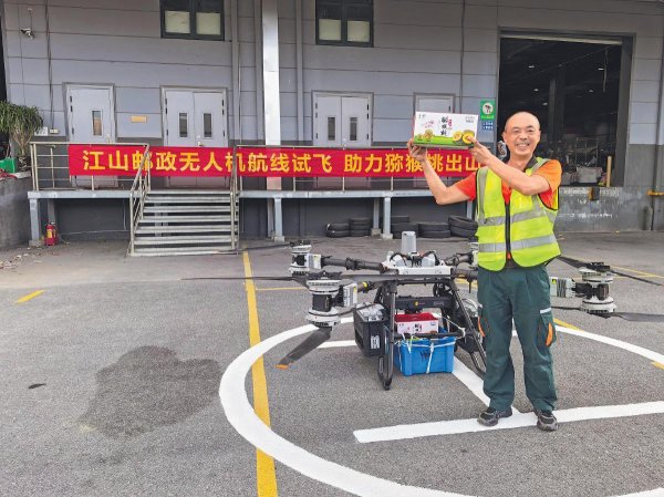 江山郵政不斷創(chuàng)新服務(wù)模式,8月27日下午,在塘源口鄉(xiāng)彬峰農(nóng)業(yè)發(fā)展有限公司的獼猴桃種植基地啟動無人機運輸航線試飛,一架搭載10公斤獼猴桃的無人機從山間果園起飛,僅用9分鐘便順利完成了至江山共配中心的20公里直線跨越。從郵車速運到無人機直達,江山獼猴桃沿暖心產(chǎn)銷鏈路走進千萬家庭。江山郵政不僅為果實筑牢“保鮮銷路”,更以多元助農(nóng)舉措讓農(nóng)戶致富路越走越寬。
