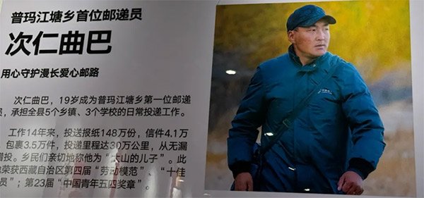 離開(kāi)普瑪江塘前,普瑪江塘鄉(xiāng)黨委副書(shū)記、人大主席洛桑久乃熱情地邀請(qǐng)采訪組參觀位于鄉(xiāng)政府內(nèi)的邊境紅色教育基地。在普瑪江塘杰出人物展區(qū),記者一下就看到了次仁曲巴事跡的展板,2019年他榮獲了第23屆“中國(guó)青年五四獎(jiǎng)?wù)隆?。洛桑久乃充滿(mǎn)感慨地說(shuō):“中國(guó)郵政和我們地方黨委、政府一樣,無(wú)論誰(shuí)來(lái)誰(shuí)走,都會(huì)永遠(yuǎn)堅(jiān)守在這高寒的邊境線上。鄉(xiāng)親們需要我們,國(guó)家需要我們!”