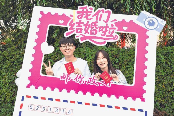 8月29日是七夕節(jié),云南省宜良縣郵政分公司聯(lián)合縣民政局在婚姻登記處共同策劃組織了一場別具特色的集體婚禮頒證活動,郵政“幸福驛站”成為新人們爭相拍照的浪漫地標(biāo)。