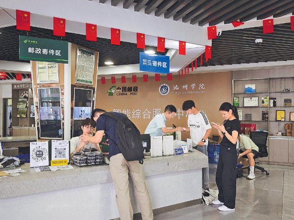 在安徽省池州市全國(guó)唯一全徽派建筑風(fēng)格的高?!刂輰W(xué)院里,白墻黛瓦映著初秋晨光,占地近2000畝的校園里生活著1.8萬(wàn)名師生。承載著校園郵政服務(wù)與多元便民功能的池州學(xué)院郵政智能綜合服務(wù)中心,以“一站式”便捷服務(wù)姿態(tài),成為開學(xué)季里師生離不開的“暖心樞紐”。