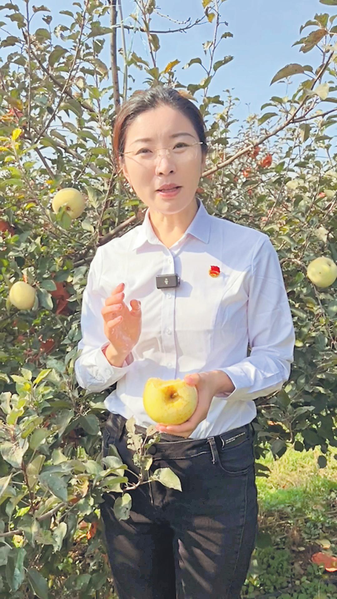 周潔在直播間推介煙臺(tái)蘋果。