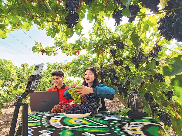 “葡萄進(jìn)入成熟期以來,兩周時間我們已進(jìn)行5場直播,還聯(lián)系當(dāng)?shù)亍W(wǎng)紅’,在其直播間上架鏈接,以進(jìn)一步提升產(chǎn)品的知名度。”伊寧縣分公司副總經(jīng)理佟巖軍介紹說。