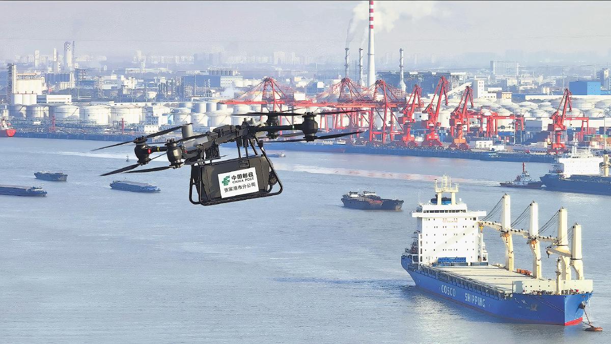 9月18日,江蘇省張家港市冶金園,一架載有30公斤快遞包裹的無人機(jī)飛往水上郵政快遞綜合服務(wù)站,標(biāo)志著張家港首條跨長江無人機(jī)郵路正式運(yùn)行。該郵路由張家港市郵政分公司聯(lián)合市海事局共同開通,通過“海事監(jiān)管+低空物流”融合模式,有效解決過往船員“購物難、取件難”的痛點(diǎn)。